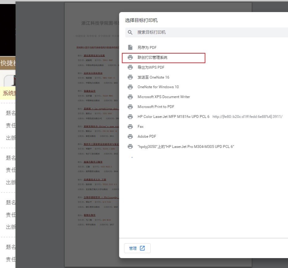 提示:打印时选择联创打印机,校园卡刷机后即可打印