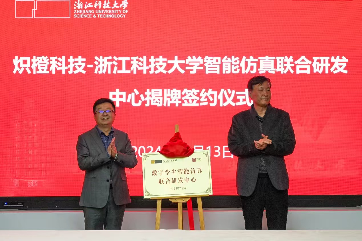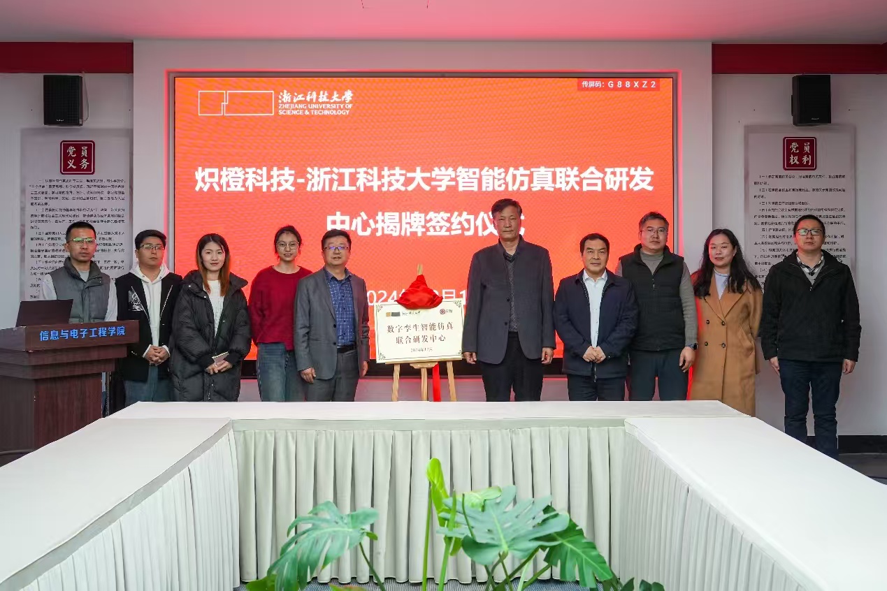 12月13日,学院举办“炽橙科技 - 浙科大数字孪生智能仿真联合研发中心”揭牌仪式,炽橙科技董事长纪尧华、浙江科技大学副校长梁荣华、学院院长雷景生、副院长甘兴利等人参加揭牌仪式。在仪式上,梁荣华与纪尧华签署《数字孪生智能仿真联合研发中心合同》,谭谞与纪尧华签署《人工智能技术在制造业的深度应用技术开发合同书》。