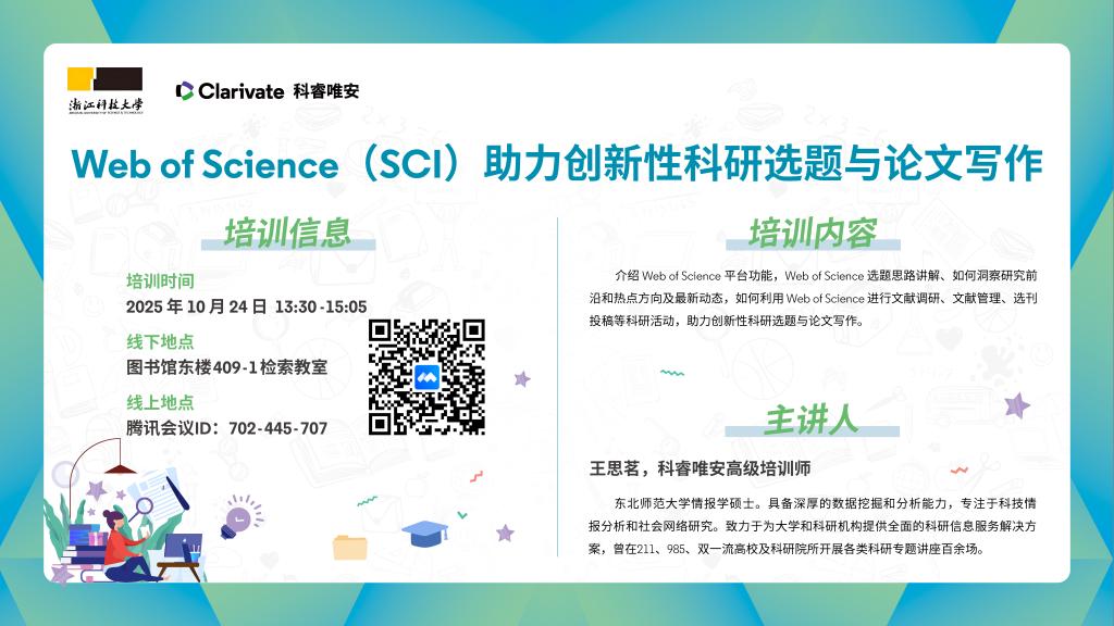 讲座培训丨Web of Science (SCI)助力创新性科研选题与论文写作
