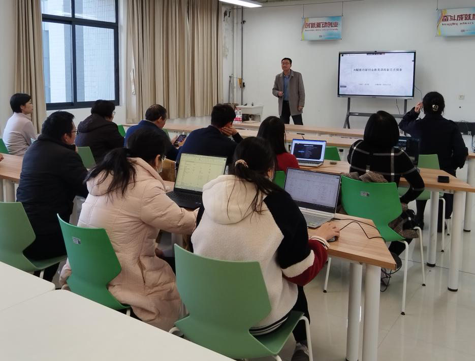 为进一步提高我院课程建设质量,深化课堂教学改革,提高教师教学水平和教学质量,2025年11月28日,创新创业学院、教师发展中心联合举办了第460期教学沙龙,邀请学院孙方红老师作题为“AI赋能创新创业教育课程新范式探索”讲座。本次讲座在实验大楼409会议室进行,创新创业学院、智能制造学院等学院的20多名教师参加,讲座由学院教学副院长董桂丽老师主持。