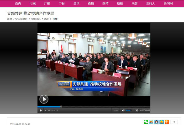 4月29日上午,安吉校区后勤事务中心党支部和安吉县孝源街道尚书干村党总支共建启动仪式举行,安吉新闻对仪式进行报道。