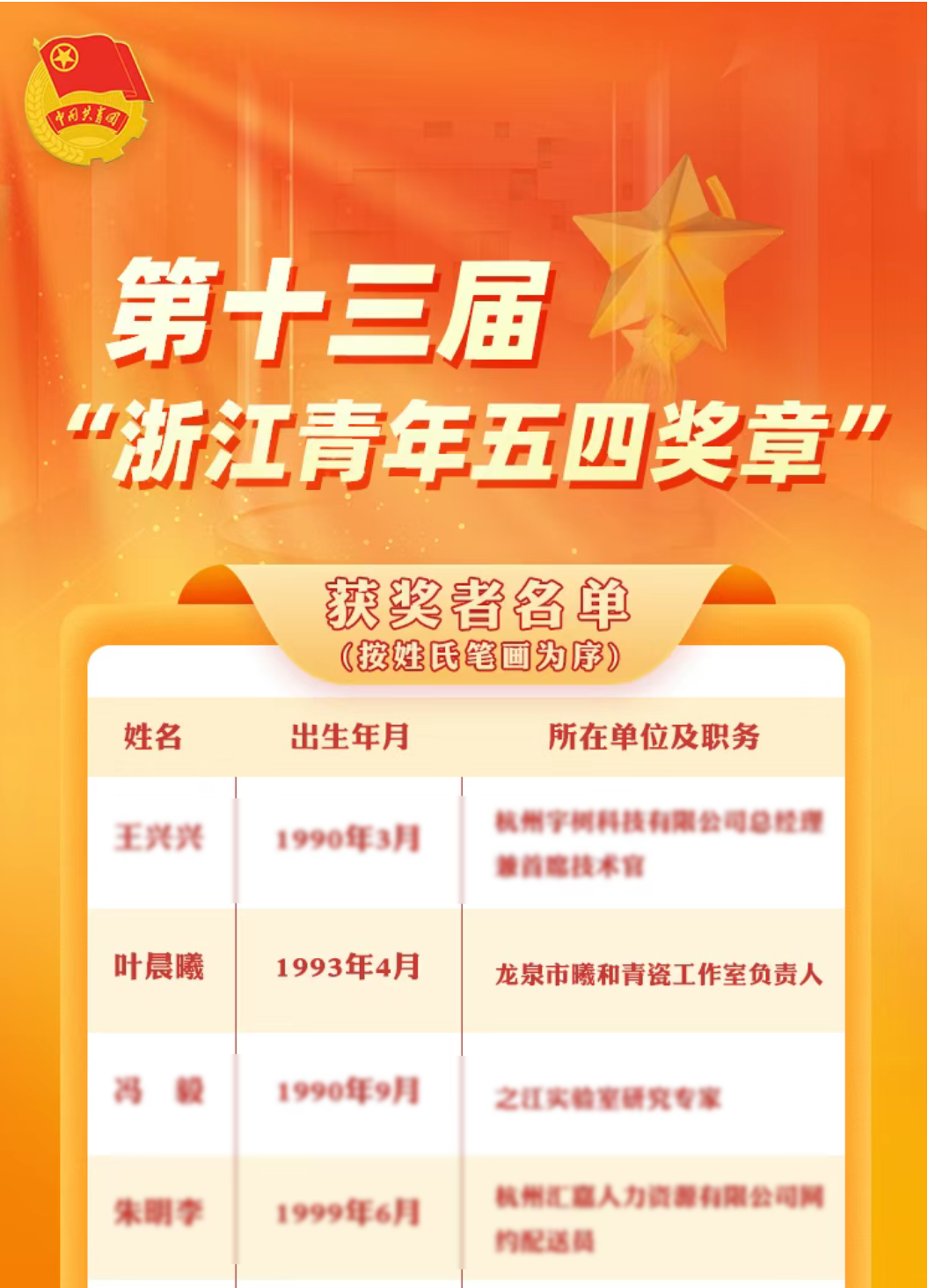 五四青年节前夕,共青团浙江省委、浙江省青年联合会决定授予20名青年第十三届“浙江青年五四奖章”称号,龙泉市曦和青瓷工作室负责人、浙江科技大学艺术学院15届校友叶晨曦入选。