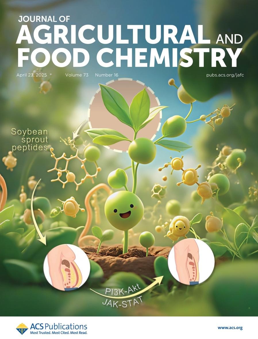 近日,生化学院油脂与蛋白营养健康团队在国际高水平期刊Journal of Agricultural and Food Chemistry发表题为“Soybean Sprout Peptides Alleviate Obesity via PI3K-Akt and JAK-STAT Pathway Modulation, Gut Microbiota Regulation, and Metabolic Reprogramming”的封面论文(点击阅读),生化学院吴轶博士为论文第一作者,王伟研究员为第一通讯作者,浙江科技大学为第一单位。