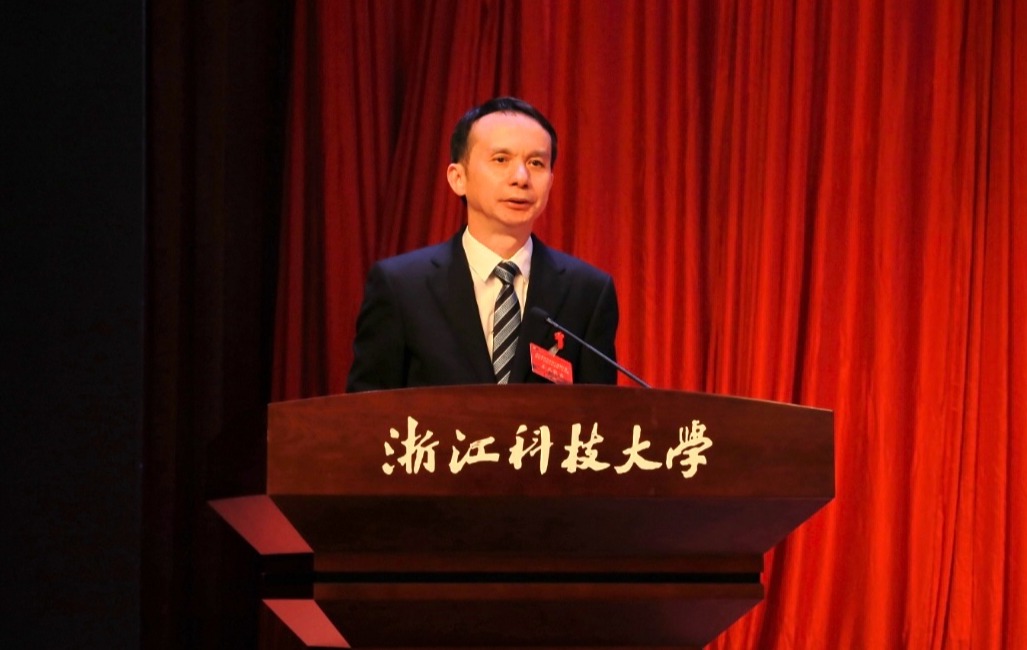 陈建孟作题为《聚焦“两项突破” 狠抓“两大改革” 加快建设特色鲜明的高水平科技大学》的学校工作报告。他指出,过去的四年,是学校发展历程中具有里程碑意义的四年,面对艰巨繁重的改革发展任务,在省委省政府的坚强领导和省委教育工委、省教育厅的直接指导下,在上级工会关心支持下,学校深入贯彻教育科技人才强省战略,团结带领全体师生员工,坚持以党的建设为统领,以“一攻坚两培育”战略和“学科登峰”主战略为牵引,落实立德树人根本任务,加快推进高水平学科建设,办成了一系列关乎全局和长远的大事要事,高质量发展迈出了坚实的步伐。2024年是浙江科技大学第一次党代会召开之年,是学校“学科建设年”“改革攻坚年”,学校扎实推进各项工作,事业发展取得显著成效,这些成绩的取得,是全体浙科大人团结奋斗的成果。