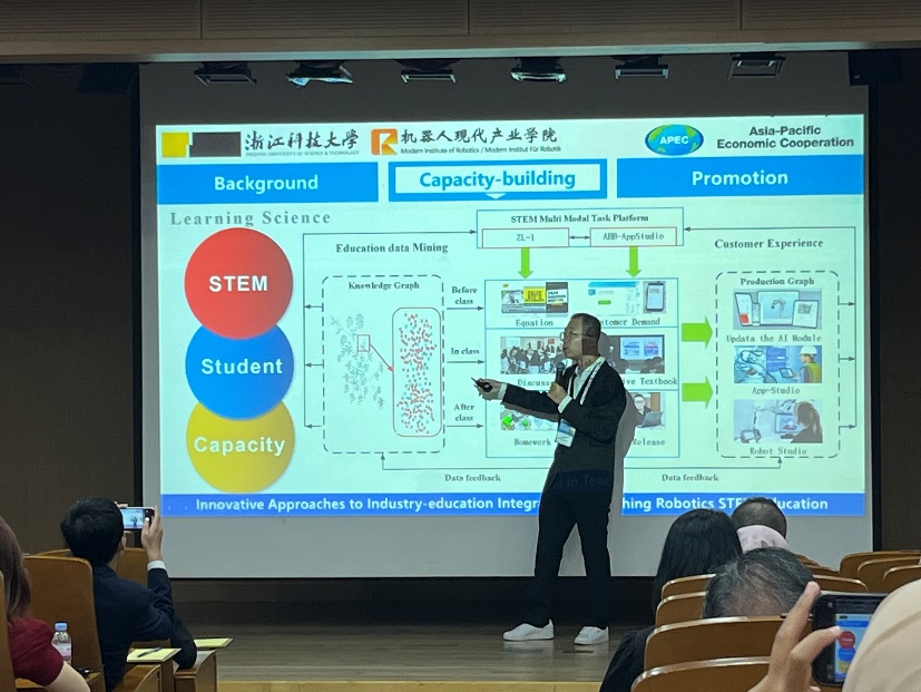 8月6-9日,机器人现代产业学院教师代表张勇博士应邀参加APEC青年STEM能力建设研讨会(2025 APEC YOUTH STEM CONFERENCE),并作“依托机器人现代产业学院的机器人STEM教育创新方法”主题报告