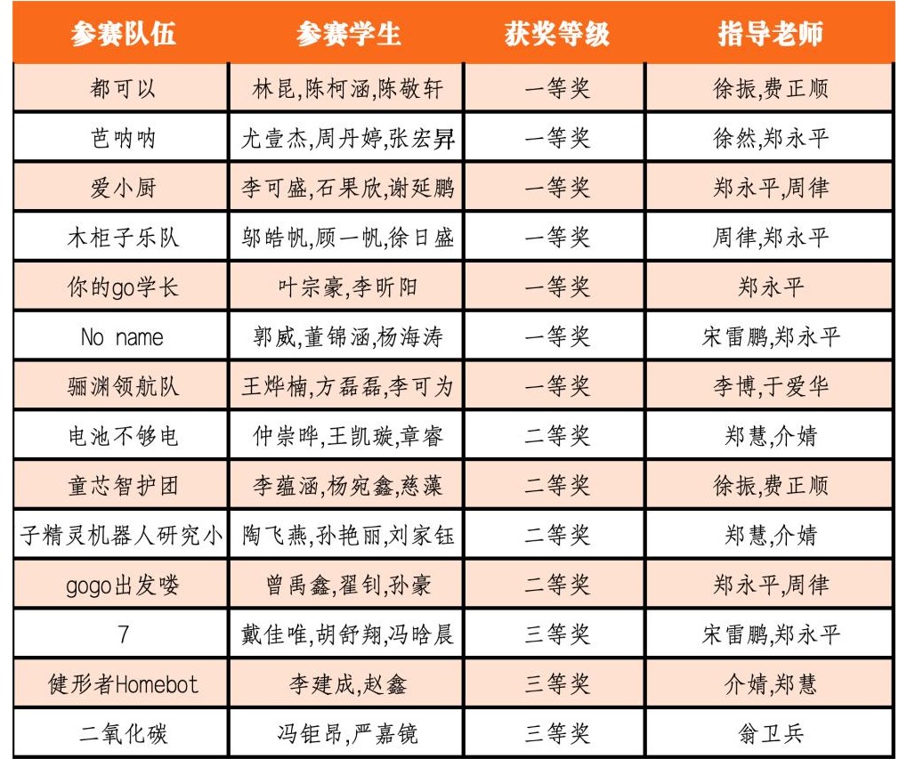8月20-22日,第八届中国高校智能机器人创意大赛在宁波余姚举行,我校参赛团队获历史最好成绩,其中一等奖7项,二等奖4项,三等奖3项,一等奖获奖数量位列全省高校第二,学校获优秀组织奖,我校教师郑永平获优秀指导教师。