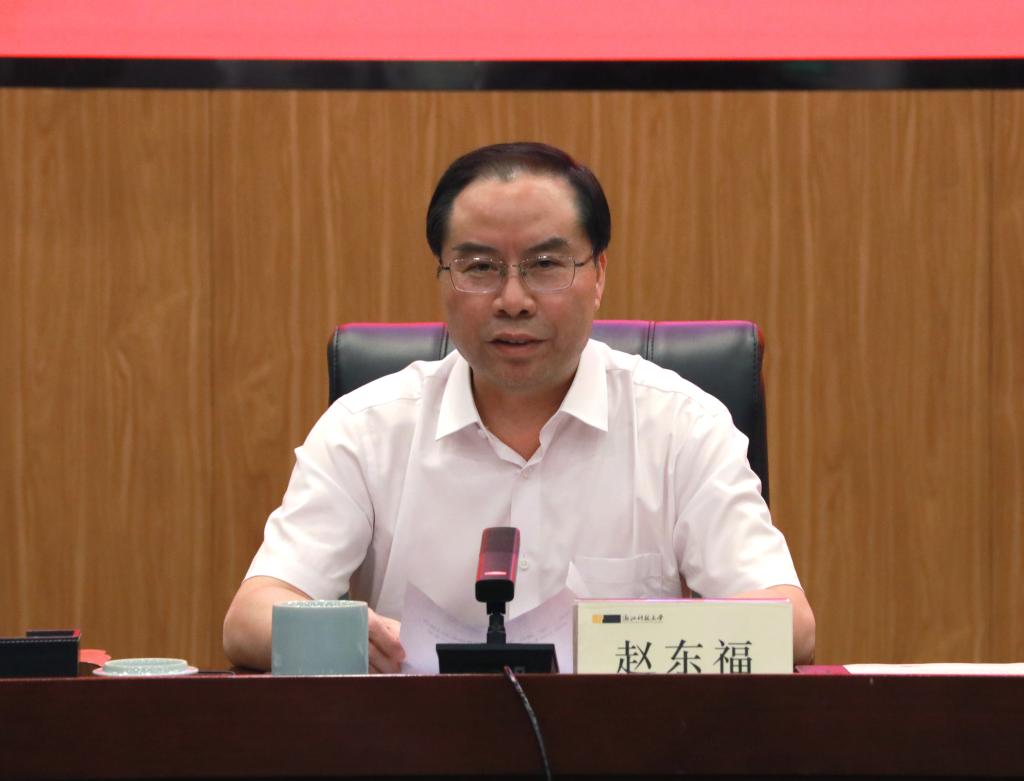 赵东福结合学习贯彻省委十五届七中全会精神和省委书记王浩在全省高校党委书记校长研修班上的讲话精神讲话。他指出,如何加快建设创新浙江,加快打造教育强省、科技强省、人才强省蓝图中找准定位、作出贡献,是摆在我们面前的重要课题。要提高服务创新浙江建设的能力和水平,必须大力推进教育创新,特别要加快推进“人工智能+”教学改革,把“会读书的人”培养成为“会创造的人”,以教育创新培养创新人才;要加快提升学校科技创新核心竞争力,大力加强有组织的科研,将科技创新全方位贯穿于人才培养、科学研究、社会服务、文化传播、国际交流与合作的全过程。