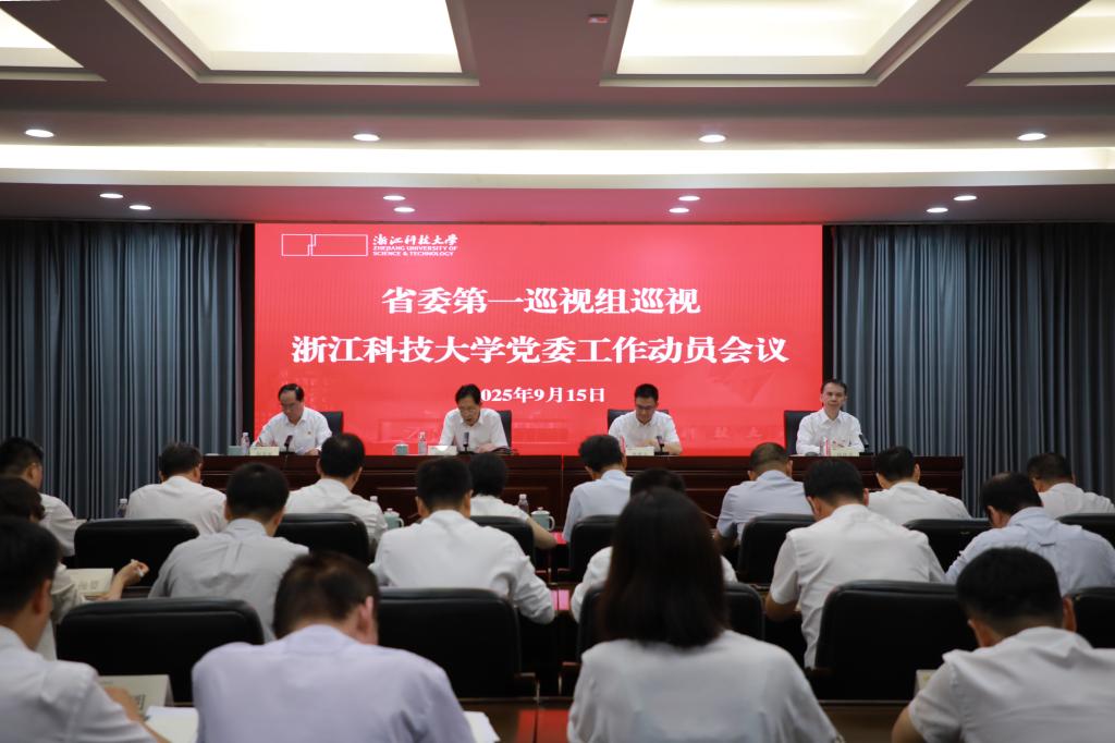 根据省委统一部署,2025年9月15日下午,省委第一巡视组巡视浙江科技大学党委工作动员会议召开。会上,巡视组组长金连山作了动员讲话,对深入学习贯彻习近平总书记关于巡视工作重要论述,全面落实党的二十届三中全会精神和省委十五届七次全会精神,高质量完成好省委第七轮巡视工作提出要求。浙江科技大学党委书记赵东福主持会议并作表态发言。