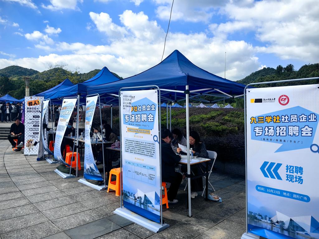 招聘会共吸引近250家优质用人单位,为2026届毕业生提供5000余个就业机会。在九三学社浙江科技大学基层委员会支持协调下,浙江九三学社社员企业首次在高校设立专场招聘会,11家来自浙江九三学社社员企业参与。张日向一行与企业负责人交流,听取企业对我校人才培养质量、专业设置、实习实践合作等方面的意见和建议。在九三学社专场展位,他与企业代表交流行业属性、岗位设置及人才标准,希望通过“高校育才、企业用才、九三荐才”良性互动,为校企合作搭建起坚实桥梁,为应届毕业生提供更广的就业通道。张日向还与正在投递简历、参与面试的毕业生们深入交流,仔细询问他们的专业背景、求职意向、简历投递进展,鼓励同学们树立正确的就业观和职业观,客观评估自身优势与市场需求,将个人发展与行业趋势、国家需要相结合,主动把握就业机遇。