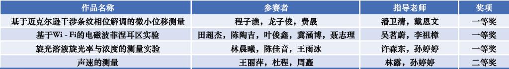 我校自竞赛启动以来,学校高度重视,在教务处的统筹指导,理学院的组织下,竞赛指导团队的精心辅导下,各参赛团队成员和指导老师团结协作,克服重重困难,持续不断打磨优化作品,获得了评委的一致认可。通过此次竞赛,我校学子不仅展现了扎实的物理知识和实验技能,更在创新思维和团队协作方面展现出了卓越的能力。今后,学校将继续深化物理实验教学改革,以赛促学、以赛促教、以赛促改,持续探索物理学创新人才选拔和培养机制,激励学子锤炼技能、展现才华,力争取得更好成绩。(教务处 理学院)
