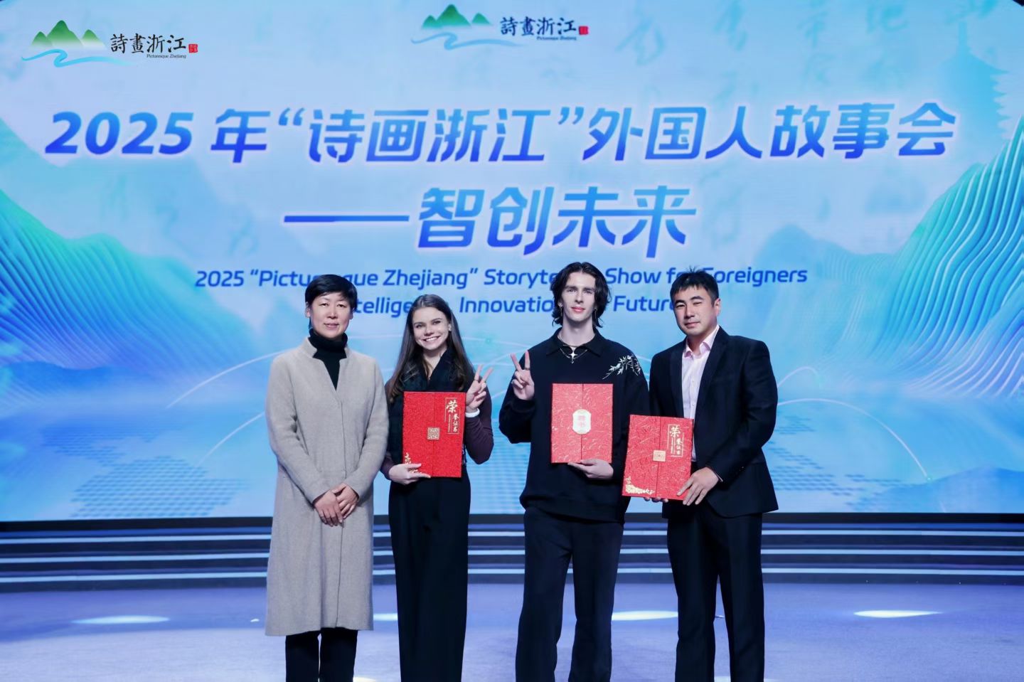 近日,2025年“诗画浙江”外国人故事会——智创未来颁奖典礼在杭州举行。我校哈萨克斯坦籍学生妮娅(KHLYOSTKINA XENIYA)获“优秀作品奖”,法国籍安乐德(PECHILLON LEANDRE COME)获“最佳制作作品奖”,安乐德还被授予“嗨游”(全国首个省级入境旅游智慧服务平台)海外推荐官称号。学校获评“最佳组织奖”。