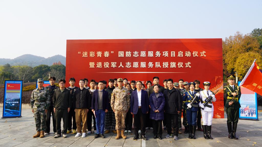 12月11日,“迷彩青春”国防志愿服务项目启动仪式暨退役军人志愿服务队授旗仪式在小和山校区举行,校党委副书记张日向出席仪式并致辞。西湖区北山街道人武部、学校相关职能部门负责人,学校退役军人志愿服务队成员、军事训练营学员及各学院师生代表100余人参加仪式。