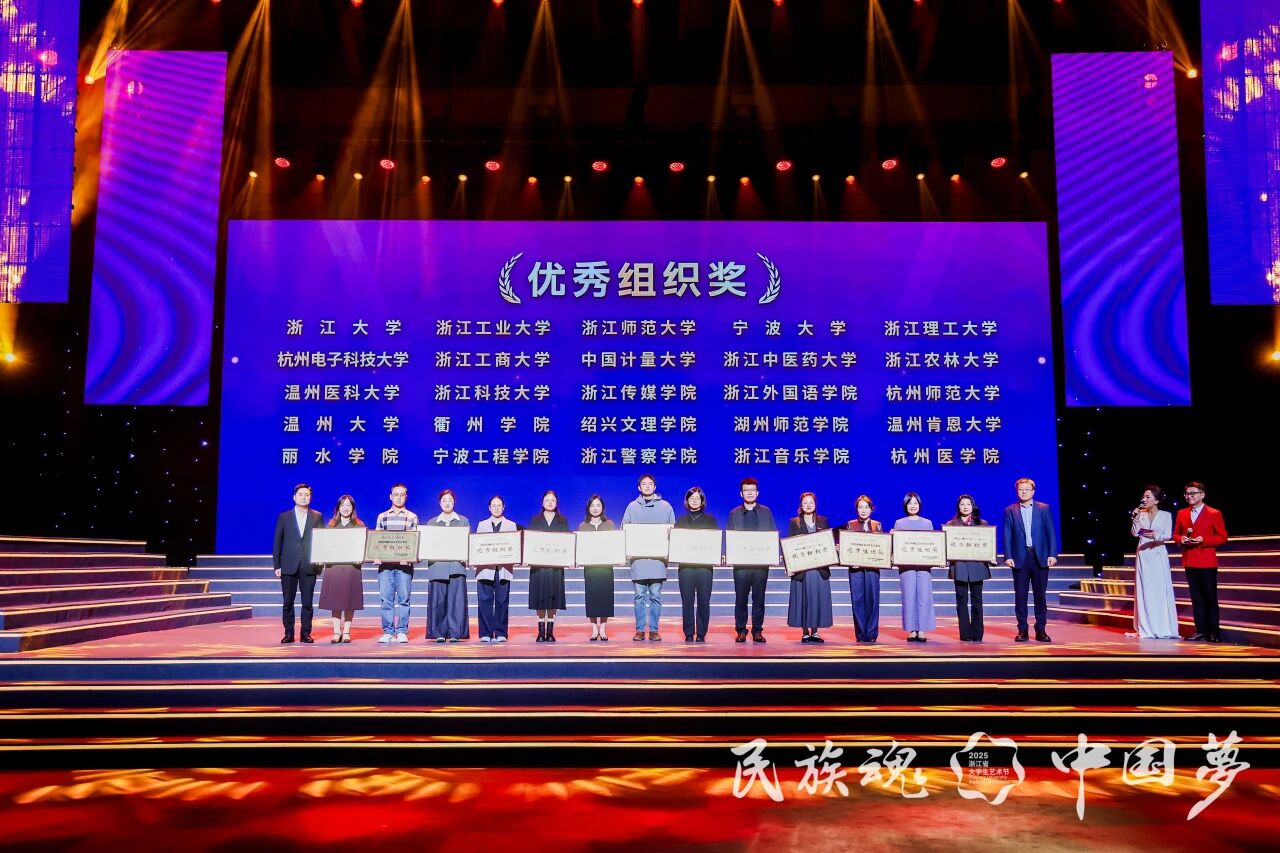 近日,2025年浙江省大学生艺术节落下帷幕。我校共获“优秀歌手奖”1项、二等奖6项,我校蝉联“优秀组织奖”。