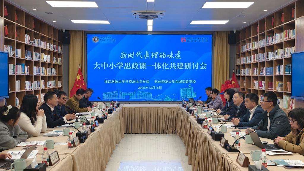 12月18日,“新时代真理的味道:大中小学思政课一体化共建研讨会”在我校召开。会上,我校与杭州师范大学东城实验学校签署“大中小学思政课一体化共建协议书”,明确了两校在思政课程共建、师资交流、资源共享等方面的合作方向。与会嘉宾为“大中小学思政课一体化实践基地”揭牌,标志着两校思政教育一体化合作迈入实质性推进阶段。