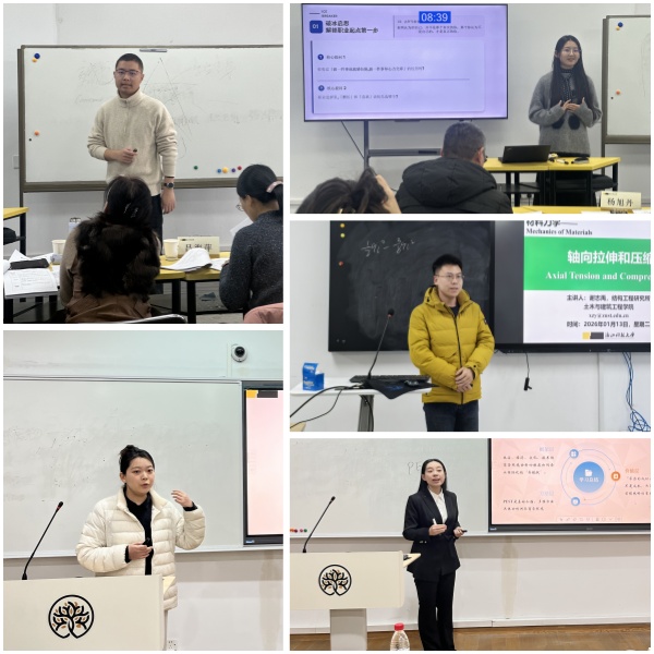 经学校审核,符合试讲要求的新教师们围绕各自专业课程精心设计并进行10分钟片段教学展示。教师们以饱满的热情投入教学,内容充实、层次清晰,注重参与式教学方法的运用,合理融合板书与现代教学手段,并且将学科前沿知识融入课堂教学,充分展现良好的专业素养和育人意识。
