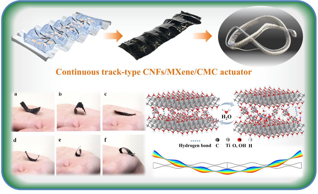 近日出版的材料科学领域国际高水平期刊《Journal of Materials Chemistry A》刊出了我校绿色纸基功能材料团队题为“A carbon nanofiber/Ti3C2TX/carboxymethyl cellulose composite-based highly sensitive, reversible, directionally controllable humidity actuator and generator via continuous track-inspired self-assembly”的研究论文(阅读原文)。环境与资源学院青年教师童欣博士为论文第一作者,沙力争教授为论文通讯作者,浙江科技大学为第一单位。