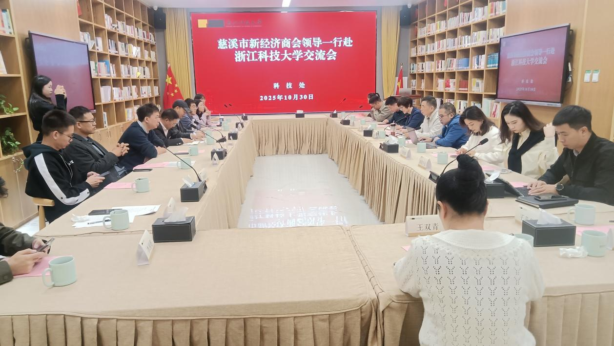 10月30日,在慈溪浙科研究院的积极联络推动下,慈溪市新经济商会秘书长宓国聪带领慈溪地方企业考察团来校,开展深度考察与交流活动。交流会前,校长陈建孟会见考察团。科技处、相关学院负责人,专家教师代表参与交流座谈,为校企双方精准对接搭建高效沟通的平台。