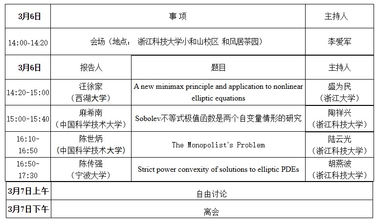 2026年杭州几何分析与方程研讨会日程