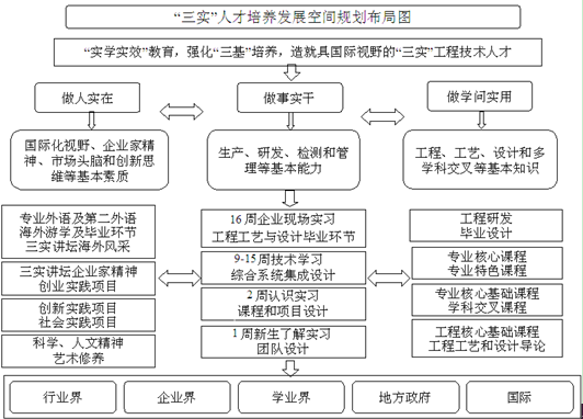 学院“实学实效”教育是以学科专业一体化建设为龙头,以“融入浙江,面向全国,为战略新兴产业一线培养人才为面向定位,以“造就具国际视野的做人实在、做事实干、做学问实用的‘三实’应用型人才”为目标定位,强化教师“融入企业、融入行业、融入学术圈”,要求学生“接轨企业、接轨行业、接轨社会”;建立与企业、科研、行业、政府、高校、国际等六大合作,拓展教学教育空间;以工程和技术实学研究科研融入工科教学,教研互动,科研反哺强教,扩大学生视野;倡导大师精神、大爱情怀,通过“科学、人文、和谐、创新”文化建设,营造育人环境;打造一支以工程科研与海外背景和企业工程师“两师”结合的师资队伍;构建以专业实践、社会实践、就业实践为主体的学生自主实践平台,培养学生自主学习、主动实践、独立思考和创新思维。