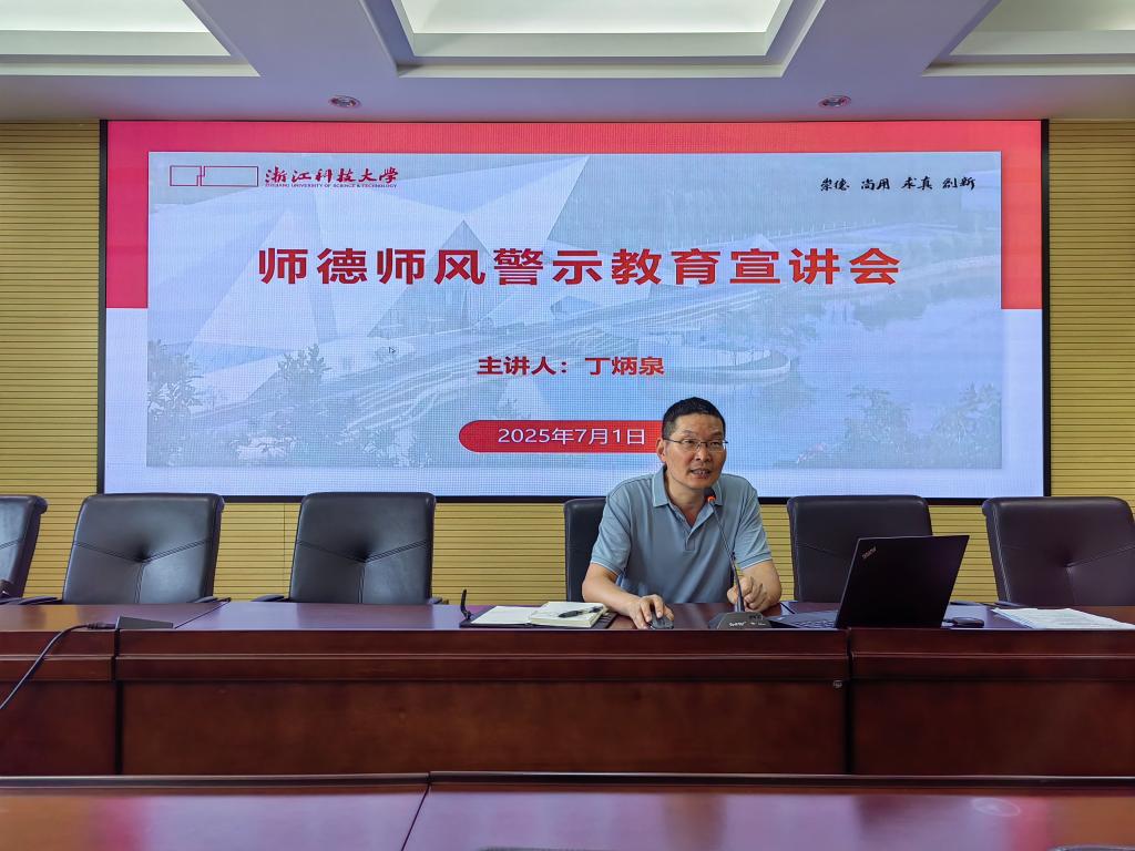 2025年7月1日,我院在A4-216会议室召开全院大会暨教职工政治理论学习会。会议由党委书记丁炳泉主持,学院党政班子成员及全体教职工参加。