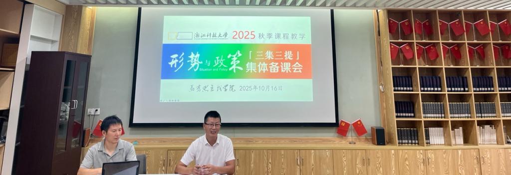 2025年10月16日下午,形势与政策教研室在小和山校区A3-202会议室召开2025年秋季学期“三集三提”集体备课会。会议严格对标教育部《高校“形势与政策”课教学要点(2025年下辑)》要求,围绕新学期新专题内容开展深度集体研讨。马克思主义学院副院长武林作工作动员,教研室主任汪祥富主持会议,全体形势与政策课专兼职教师参会。