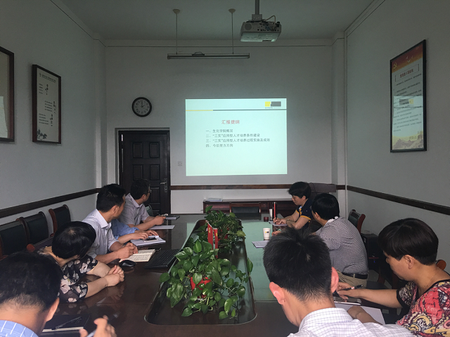 王老师从学院概况、人才培养条件建设、人才培养成效、存在问题及改进措施等方面进行了ppt汇报。罗老师充分肯定了学院所做的迎评工作,对学院的ppt 汇报内容提了意见和建议,并对生化学院迎评工作做了指导。