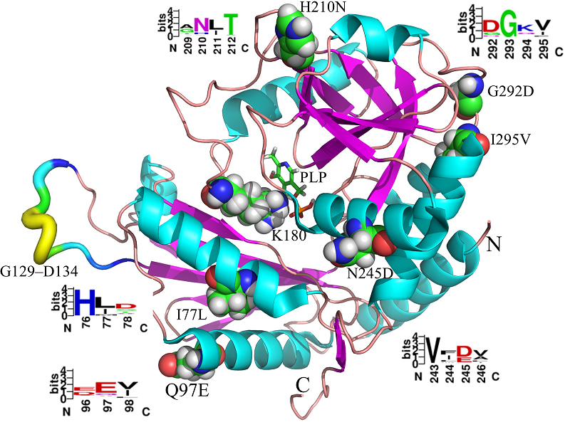 黄俊教授前期与美国明尼苏达大学Kazlauskas教授课题组合作研发了一种序列一致性突变的生物信息学在线工具(Huang J,et al, Biochemistry, 2015; Jones BJ, Lim HY, Huang J,Kazlauskas RJ,Biochemistry, 2017),通过该工具预测了与转氨酶稳定性相关的氨基酸突变位点(I77, Q97, H210, N245, G292, I295),通过基因定点突变、酶学性质测定以及分子动力学模拟,筛选的双突变体H210N/I77L在40 ℃的半衰期(t1/2)是野生酶的6.1倍,半失活温度(T50)比野生型提高6.6 ℃。然后将该方法获得的突变体H210N/I77L与引入二硫键(Huang* et al. Biotechnology and Applied Biochemistry, 2018)、B-factor结合去折叠自由能(Huang et al., Biochemical and Biophysical Research Communications, 2017)等方法结合进行组合突变,筛选到的突变体H210N/I77L/M150C-M280C半衰期(t1/2)是野生酶的16.6倍,T50比野生型提高11.8℃。