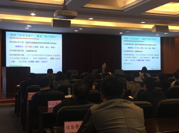3月27日,受生化学院和教务处联合邀请,浙江工业大学艾宁教授做客我校教学发展论坛,指导虚拟仿真实验教学项目建设和工程教育专业认证工作。生化学院院长王永江、教务处副处长陈烨、陈红叶、生化学院副院长黄俊、吴元锋以及全校各相关学院共100余位师生参加了本次论坛。生化学院副院长刘赫扬主持论坛。艾宁教授作了两场精彩的报告。
