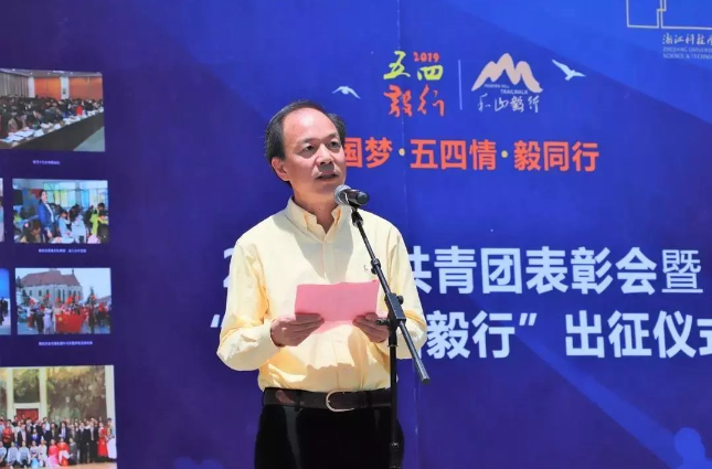2019年5月4日,为深入贯彻学习习近平同志重要讲话思想,弘扬五四精神,唱响青春之歌,浙江科技学院共青团表彰大会暨第十二届“五四和山毅行”出征仪式于银杏广场隆重举行。