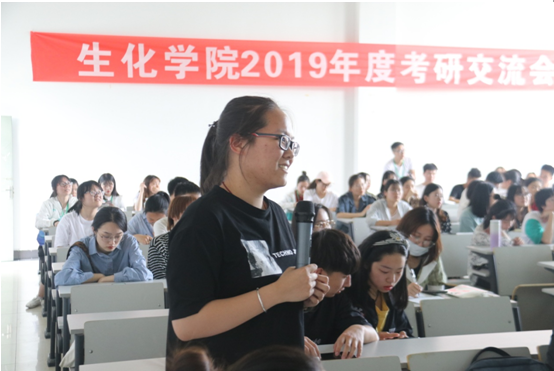 5月21日生化学院2019年度考研交流会暨动员大会于A3-221举行。学院党委副书记程海丰老师为本次考研交流会做了开场动员。程书记指出,学院一贯高度重视学风建设和考研工作,近些年我院学子国内考研率一直位居全校首位,尤其今年,上线率、录取率和升学率等多项数据均再创学院历史新高,这是全体生化人共同努力的结果。程老师鼓励大家尽早树立职业目标,做好人生规划,并分析了我院的专业特点和就业形势,鼓励大家根据自身情况作出适合自己的选择,并为之不懈奋斗。程老师表示,学院将全力帮助想要考研的同学,除了帮助同学们联系报考学校的学长学姐与导师外,还将通过优化考研学习环境、加强考研交流培训、实施读研学长传承计划等举措,提升考研帮扶成效,尽最大努力为同学们考研做好服务。