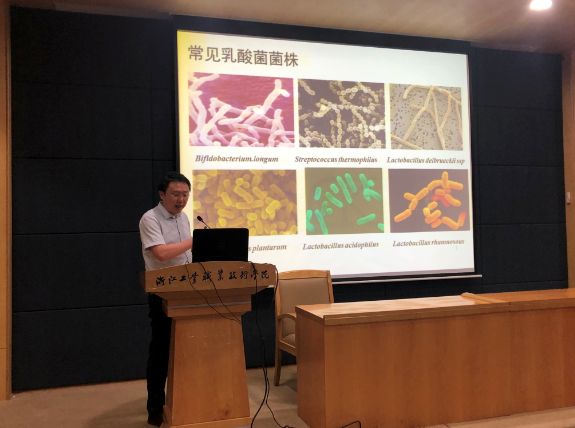 学院副院长黄俊教授作“乳酸菌生物合成食品功能因子的研究进展” 主题报告,介绍了其团队在功能食品产业中的乳酸菌最新研究成果及其应用。(省2011协同创新中心 姚刚)